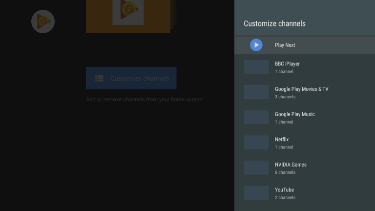You can also get a list of customization of channels, as recommendation, based on the media apps you installed or media that you played online.