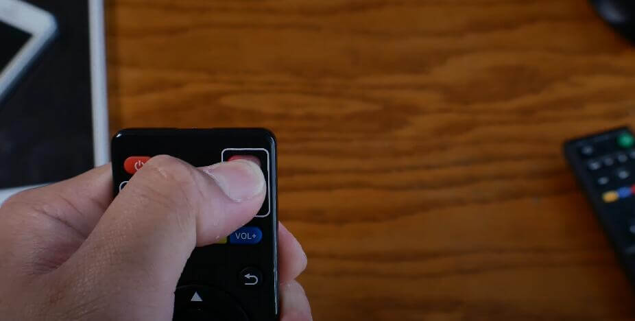 - Now, grab the remote control of your TV and press the same corresponding button on your remote control, in our case, we pressed the power button on our TVs remote control. Next, we will directly point the TVs remote control with the Android box’s remote control in such a way that the sensors of both the device are facing each other.
