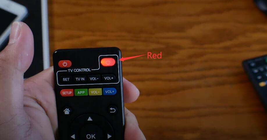 - On your Android TV Box remote, press and hold the power button in the upper right corner to control your TV (called as TV CONTROL buttons). The power button should light up in red. Continue to press the button until the power button turns bright red. Do not press the power button for the TV box.